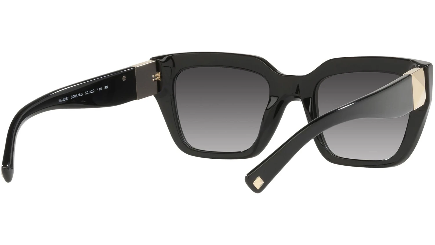Valentino sunglasses model VA4097 black frame variant, color code 50018G with grey gradient lens. Established in Rome in 1960, Maison Valentino is one of the highest expressions of couture savoir faire and the excellence that has made Italian products famous worldwide. Lightness, grace and precious delicacy are the DNA of Valentino. The Valentino eyewear collections, launched in 2017, embodies the Maison’s timeless elegance in a perfect balance between tradition and innovation in full respect of the iconic values of the brand.