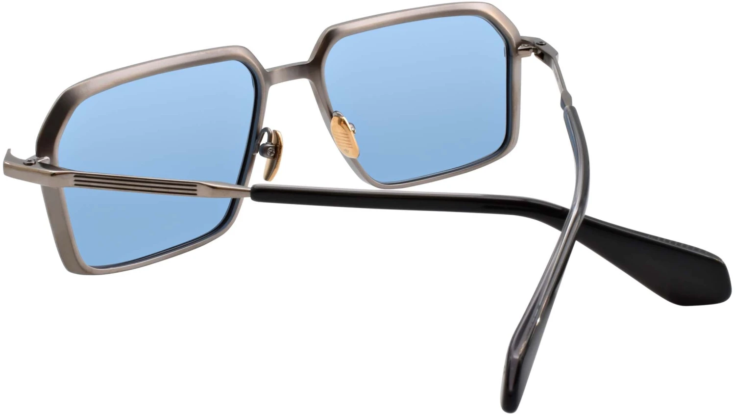 Jacques Marie Mage’s Vasco collection presents sharp, rectangular sun and optical glasses from the titanium series, boasting a contemporary v-shaped profile, custom hinge, and meticulous hairline epoxy accents. Embodying an air of refined worldly sophistication, indulge in the luxurious allure of these stunning late-’70s-inspired spectacles. Crafted with precision, the unique titanium frame showcases sculpted volumes, exquisite hairline epoxy details, and temple tips laminated with custom-cured acetate.