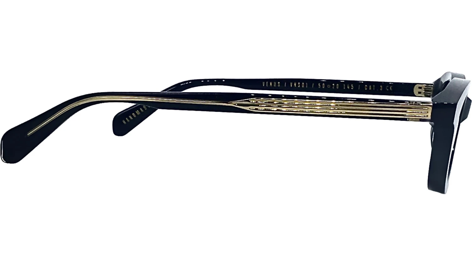 Gast VENUS sunglasses featuring black gold oval acetate frame and black lenses. Style name: VENUS. Color code: VNS01. Authorized Gast online reseller. Your glasses will include the original case and accessories and are covered by a 12-month global warranty.