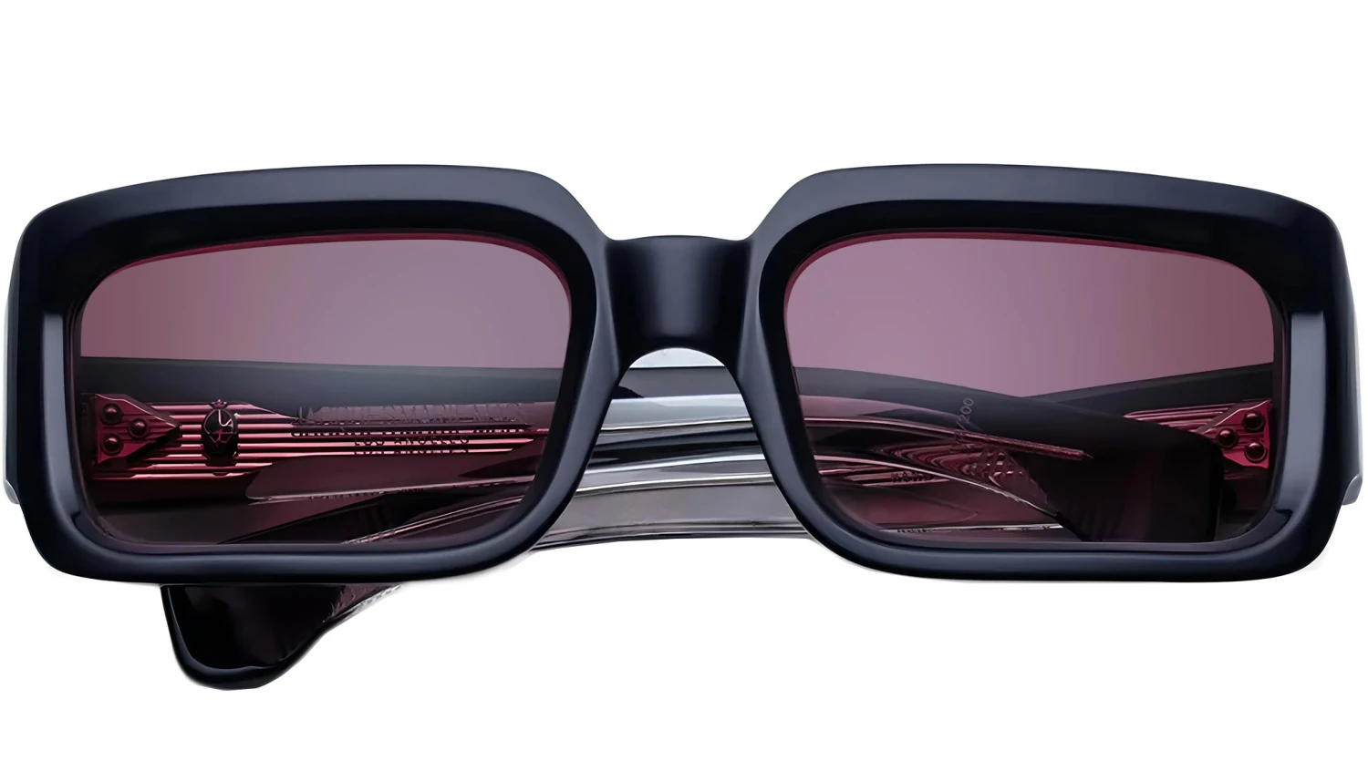 A striking blue 8mm cured cellulose acetate frame paired with custom double-laminated acetate temples, highlighted by refined precious metal hardware and purple gradient lenses. Crafted in Italy, this design boasts an inner silver gauntlet wirecore, silver tension-secured custom 7-barrel hairline hinge, and Wine Gradient CR-39 6-base lenses with a backside anti-reflective treatment, delivering both style and 100% UV protection. Frame total width: mm.