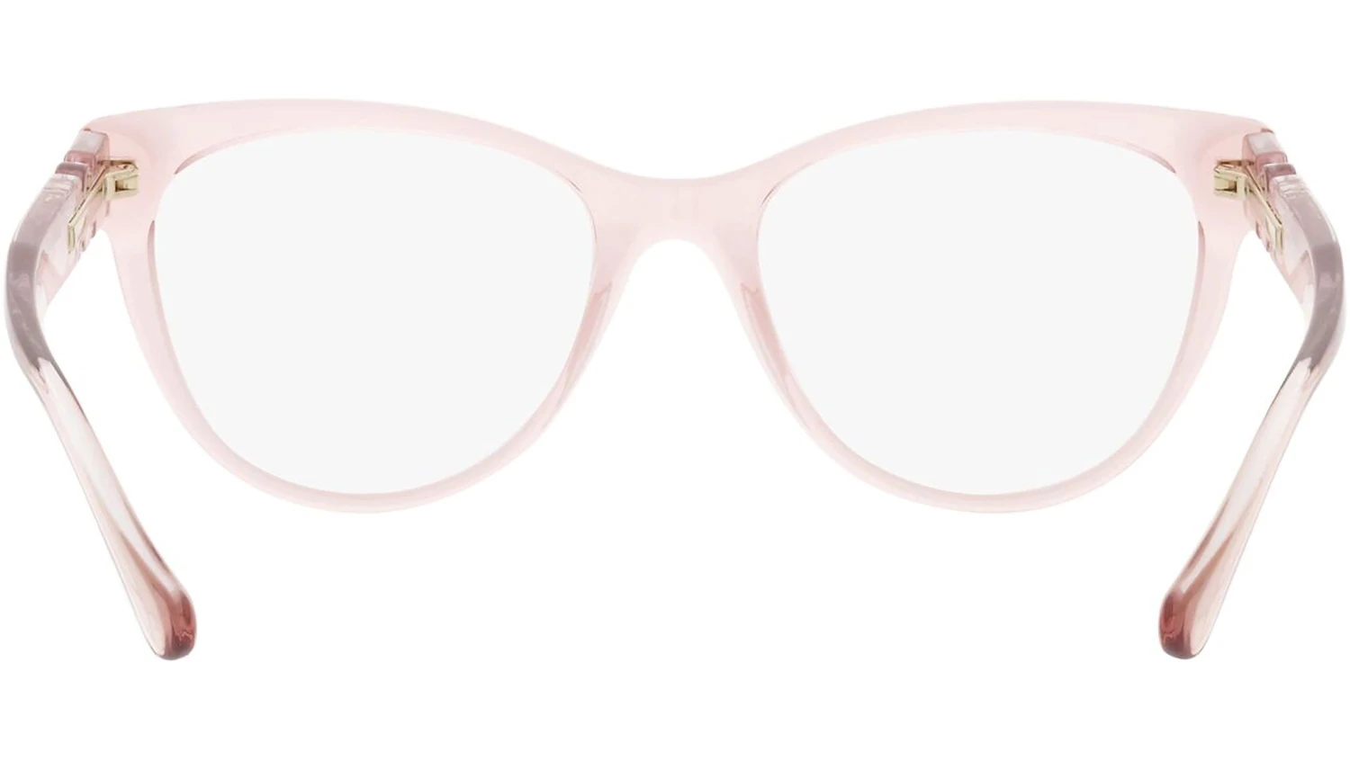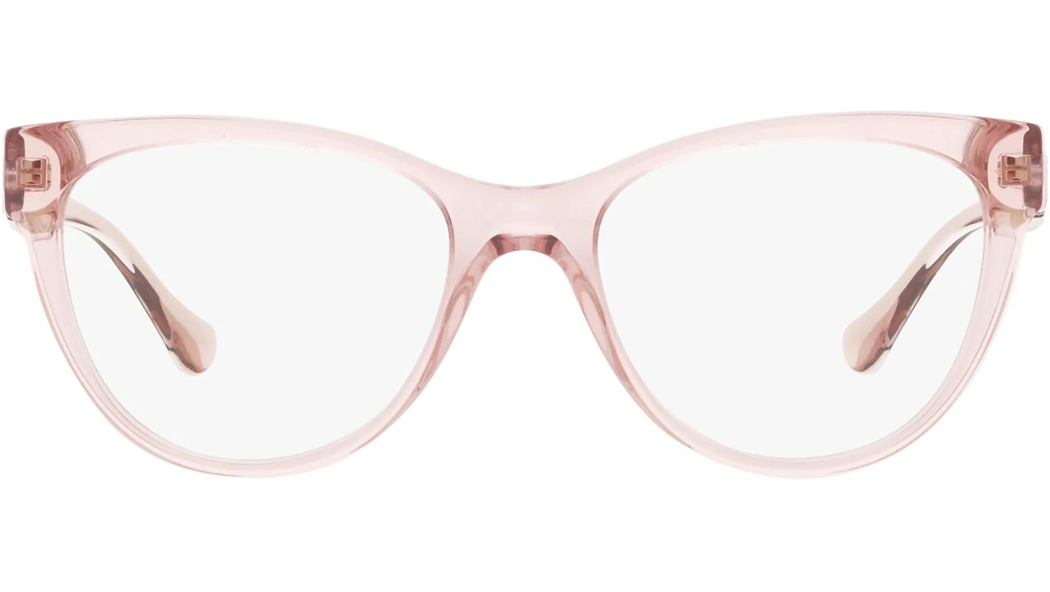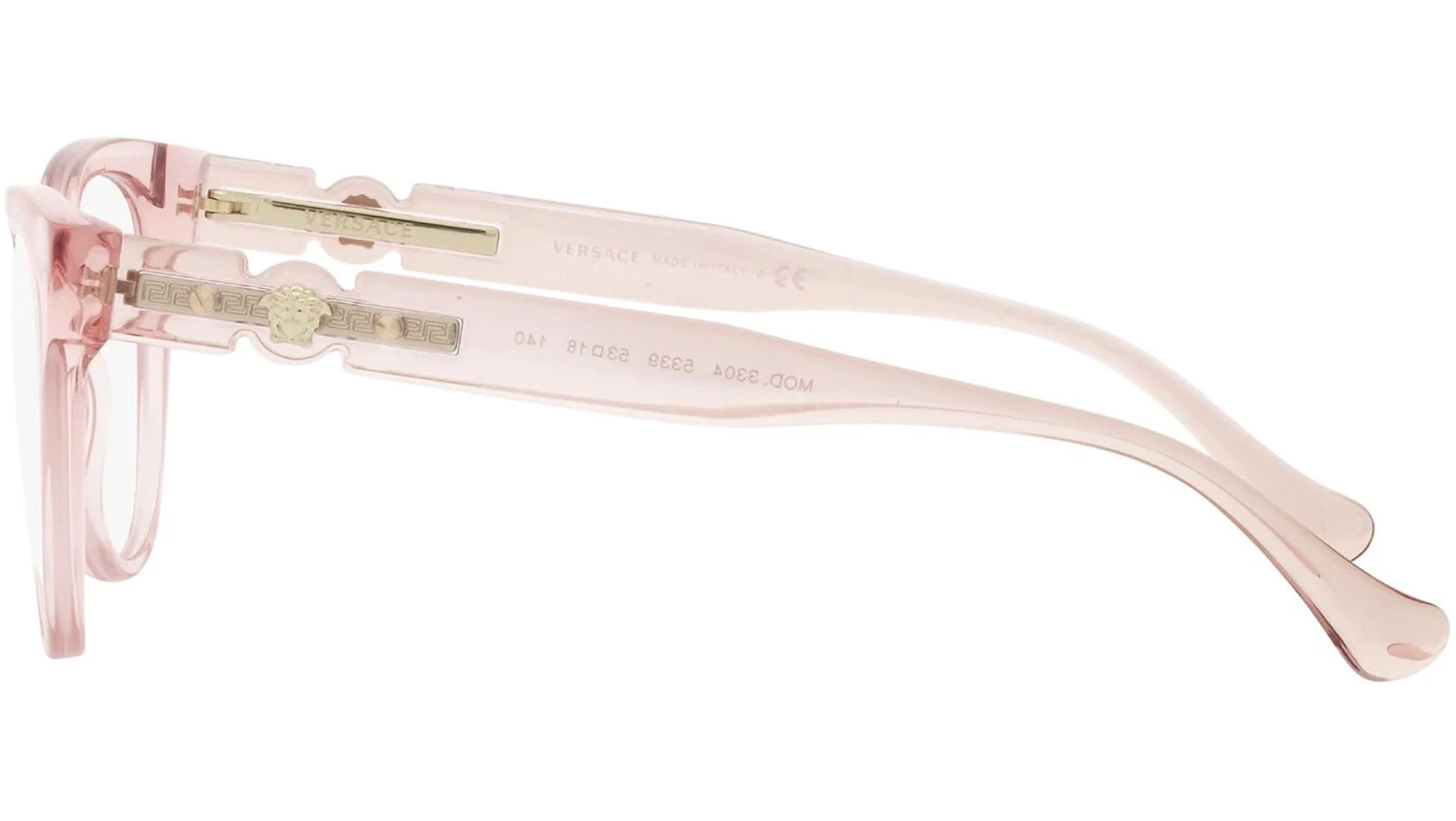 Versace Eyewear Collection model VE3304, transparent pink frame variant, color code 5339. Versace eyewear combines technical innovation with the essence of the brand and bears the distinctive visual details the fashion house is known for. Is the epitome of sensual glamour, sexy and empowering; a true symbol of Italian luxury.