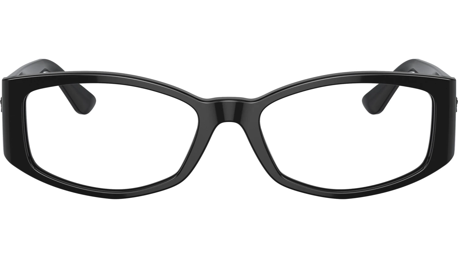 Versace optical frame for women model 3343 featuring black full rim acetate frame and base 4 demo lens. High bridge fit. Frame line: Daily Heritage. Brand code: 0VE3343. Color code: GB1. Authorised Versace Eyewear Online Reseller. Your glasses will come including the original case and accessories and will be covered by 12 month global warranty.