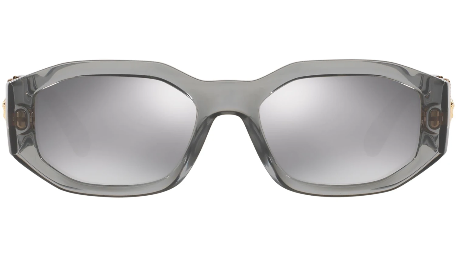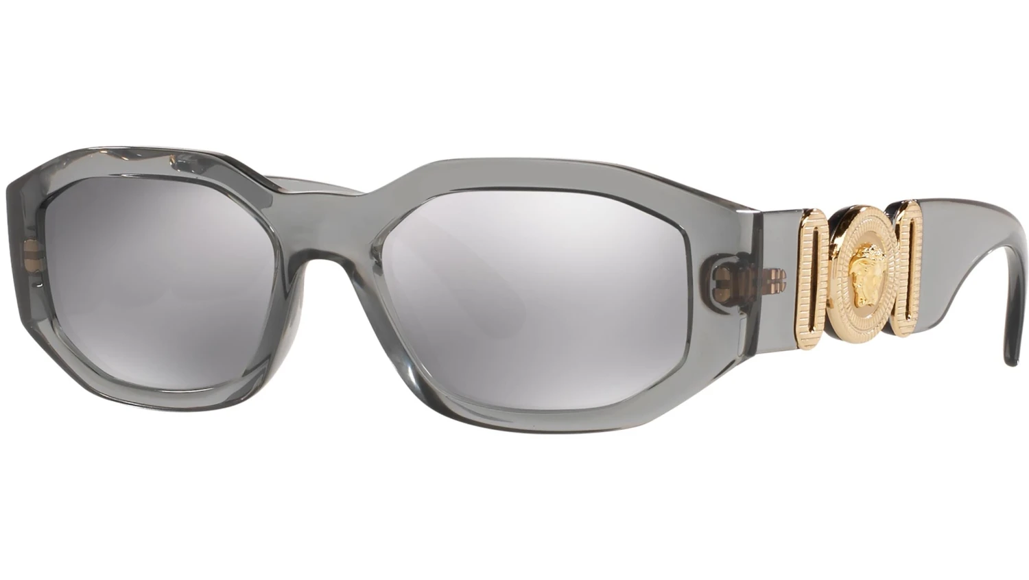 Versace sunglasses Collection model VE4361, transparent grey frame variant, color code 311/6G with light grey mirror silver 80 lens. Versace is one of the world’s most iconic and famous luxury fashion houses. Proudly Italian, it is designed for men and women who desire a modern and glamorous style that combines sophistication and sex appeal. The Maison is the epitome of sensual glamour, sexy and empowering: a true symbol of Italian luxury.