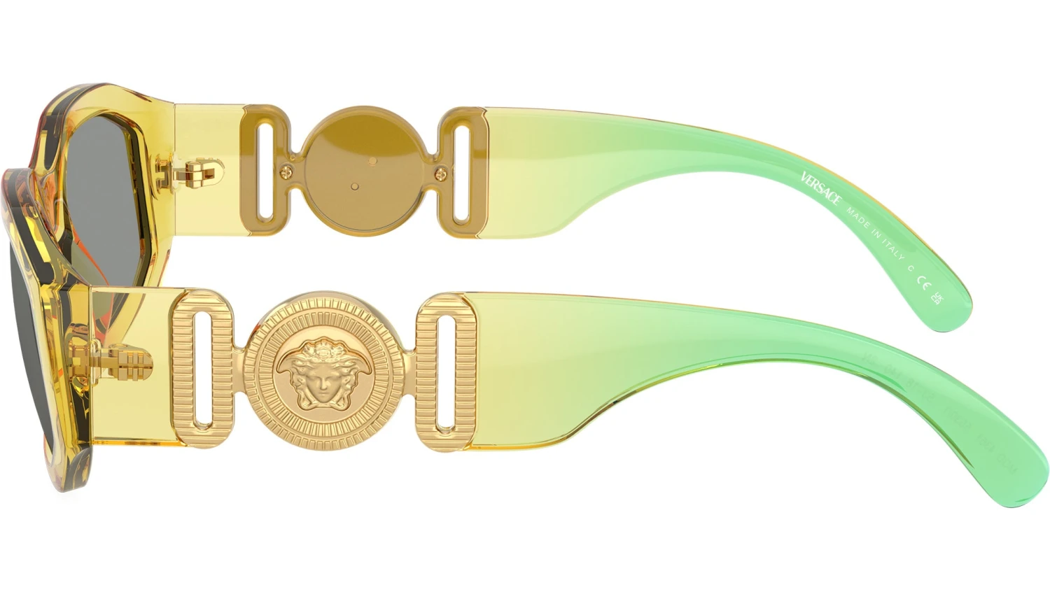 Versace sunglasses for men model VE4361 5530/1 featuring gradient yellow / red / green nylon frame and grey base 6 polycarbonate lenses. High bridge fit. Frame line: Iconic. Brand code: 0VE4361. Color code: 5530/1. Authorised Versace Eyewear Online Reseller. Your glasses will come including the original case and accessories and will be covered by 12 month global warranty.