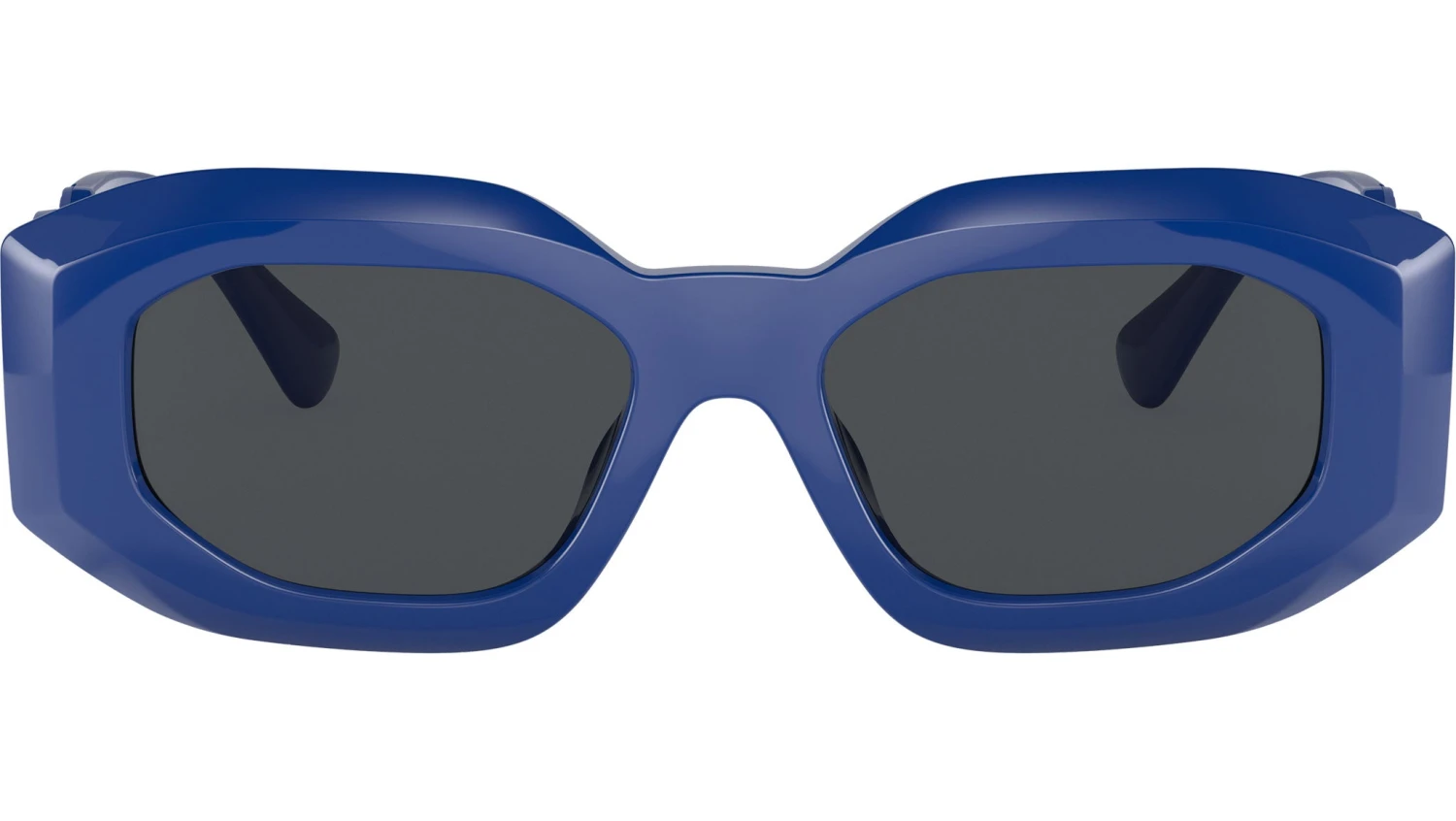 Versace sunglasses for men model 4425U featuring blue full rim nylon frame and base 6 decentered dark grey lenses. Universal fit. Frame line: Iconic. Brand code: 0VE4425U. Color code: 536887. Authorised Versace Eyewear Online Reseller. Your glasses will come including the original case and accessories and will be covered by 12 month global warranty.