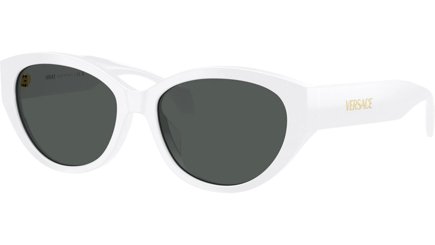Versace sunglasses for women model VE4495D 314/87 featuring white acetate frame and dark grey base 4 bio poliammide lenses. Low bridge fit. Frame line: Daily Heritage. Brand code: 0VE4495D. Color code: 314/87. Authorised Versace Eyewear Online Reseller. Your glasses will come including the original case and accessories and will be covered by 12 month global warranty.