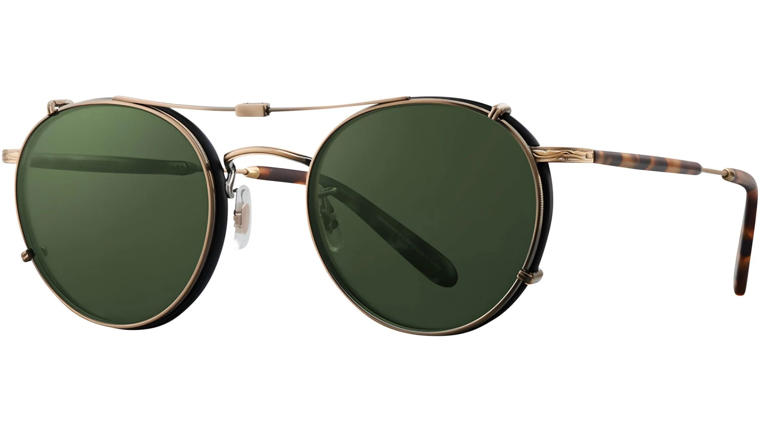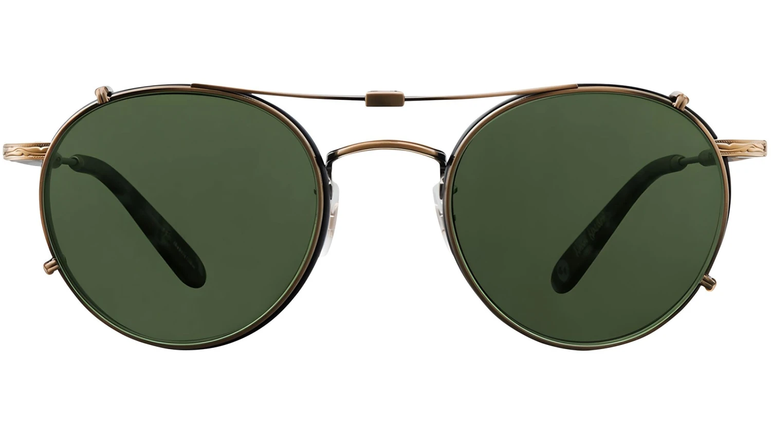 A metal folding sun clip for Garrett Leight’s iconic Wilson frames, available in classic color combinations to complement any pairing. Frame sold separately. Pairs with Wilson, Wilson M, Wilson M II and Wilson T eyeglasses. Hand Finished. Optical Quality CR-39 lenses. 4 Base lens with backside anti-reflective coating. Stainless Steel. 100% UV protection. Includes a GLCO clip case. Unisex